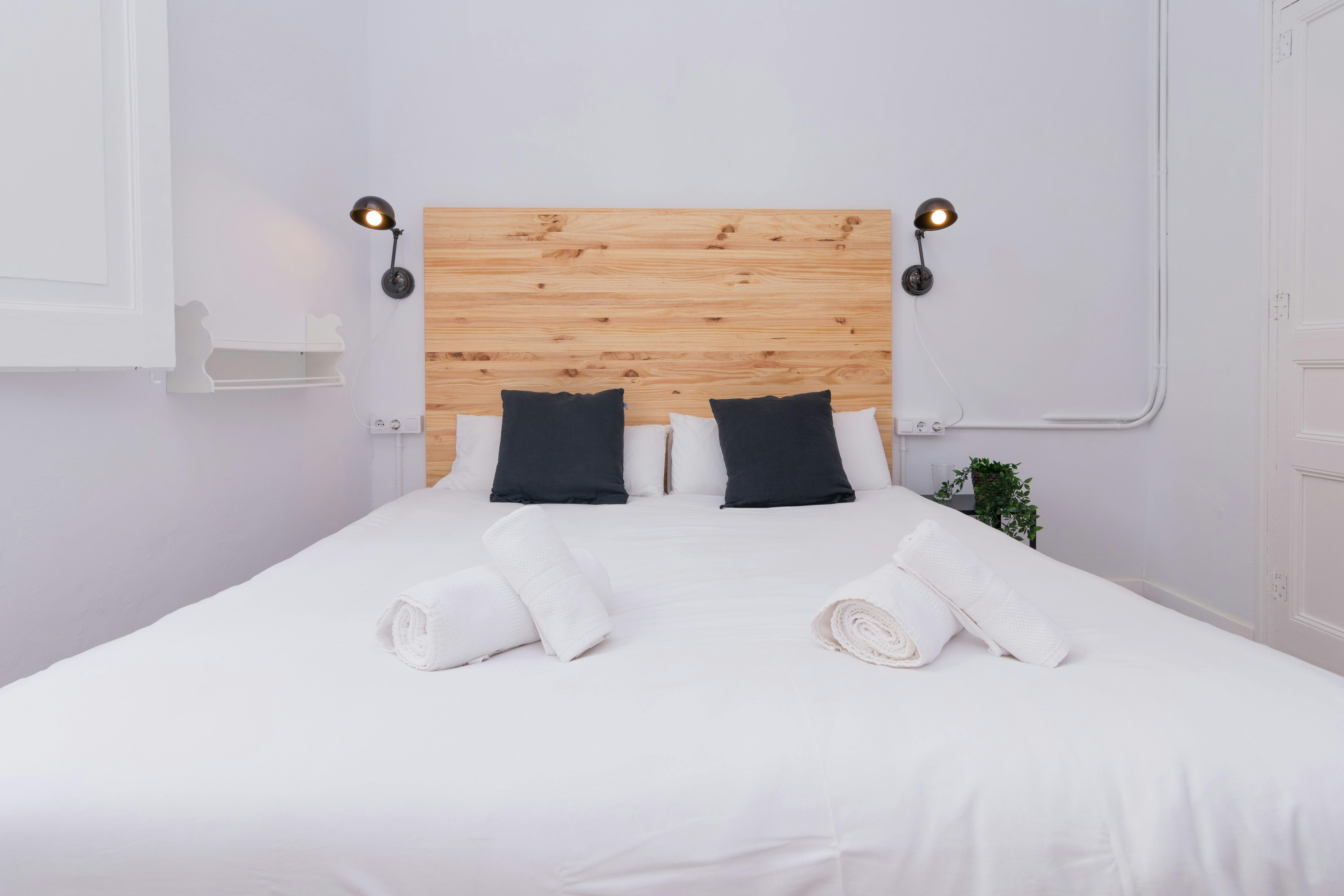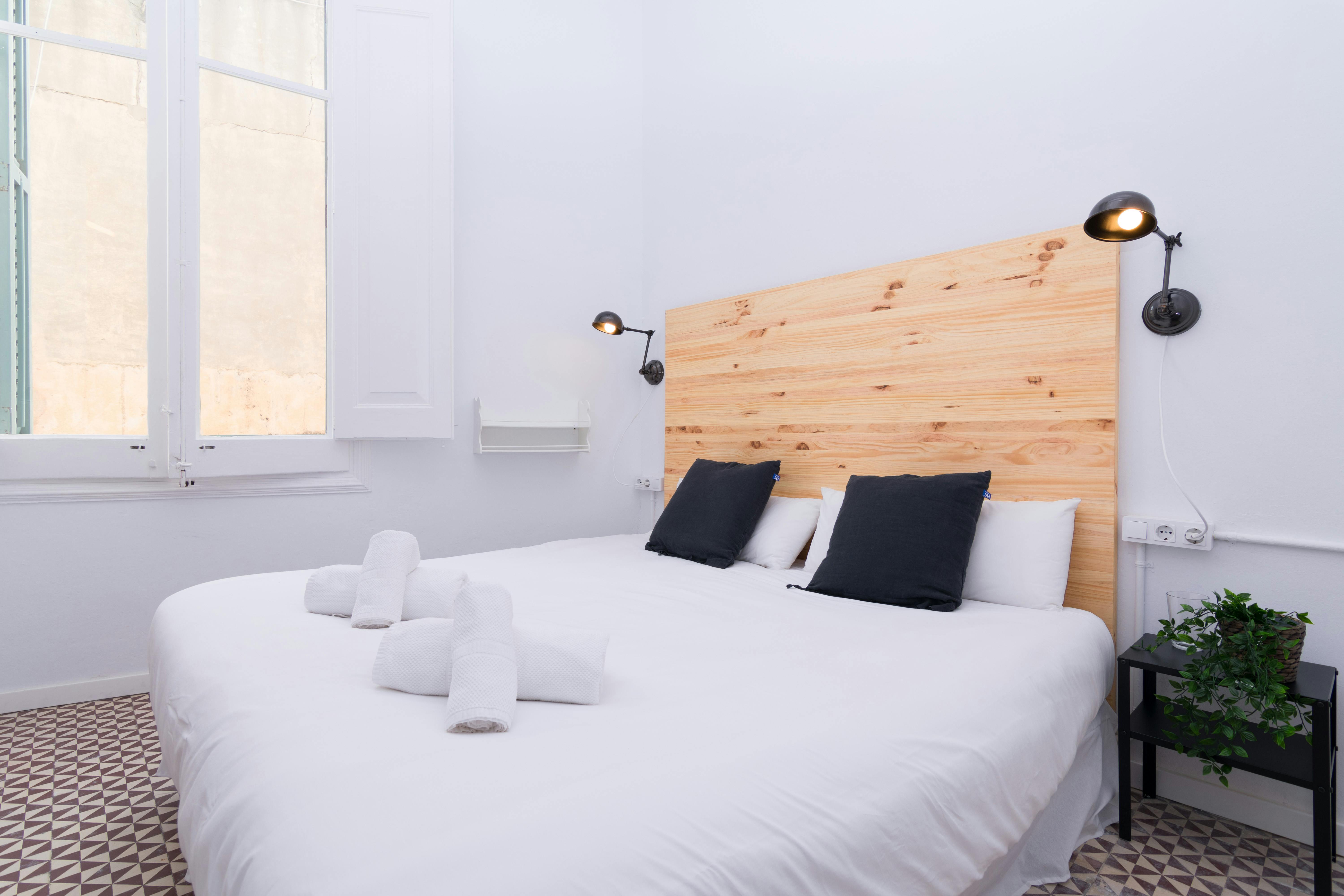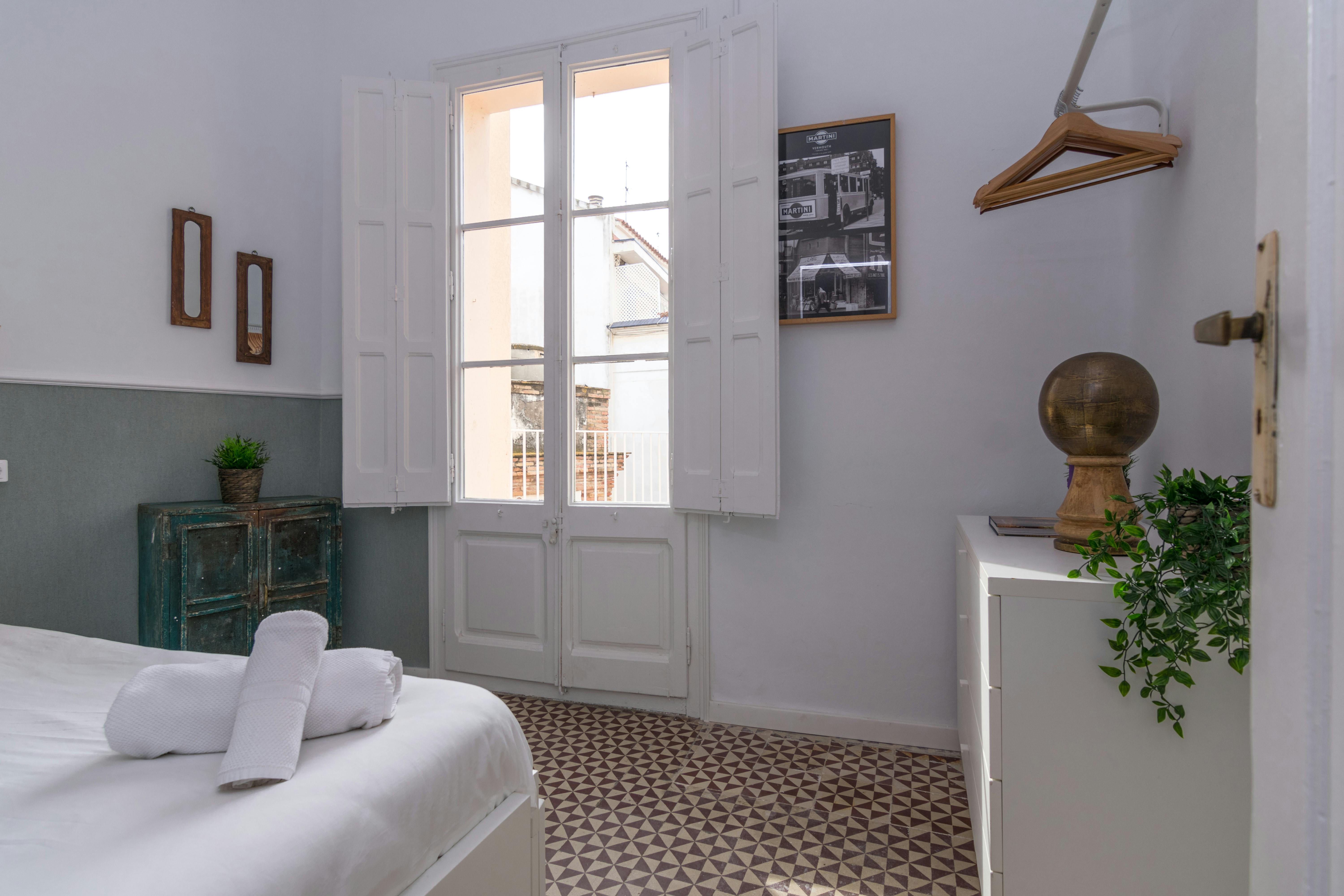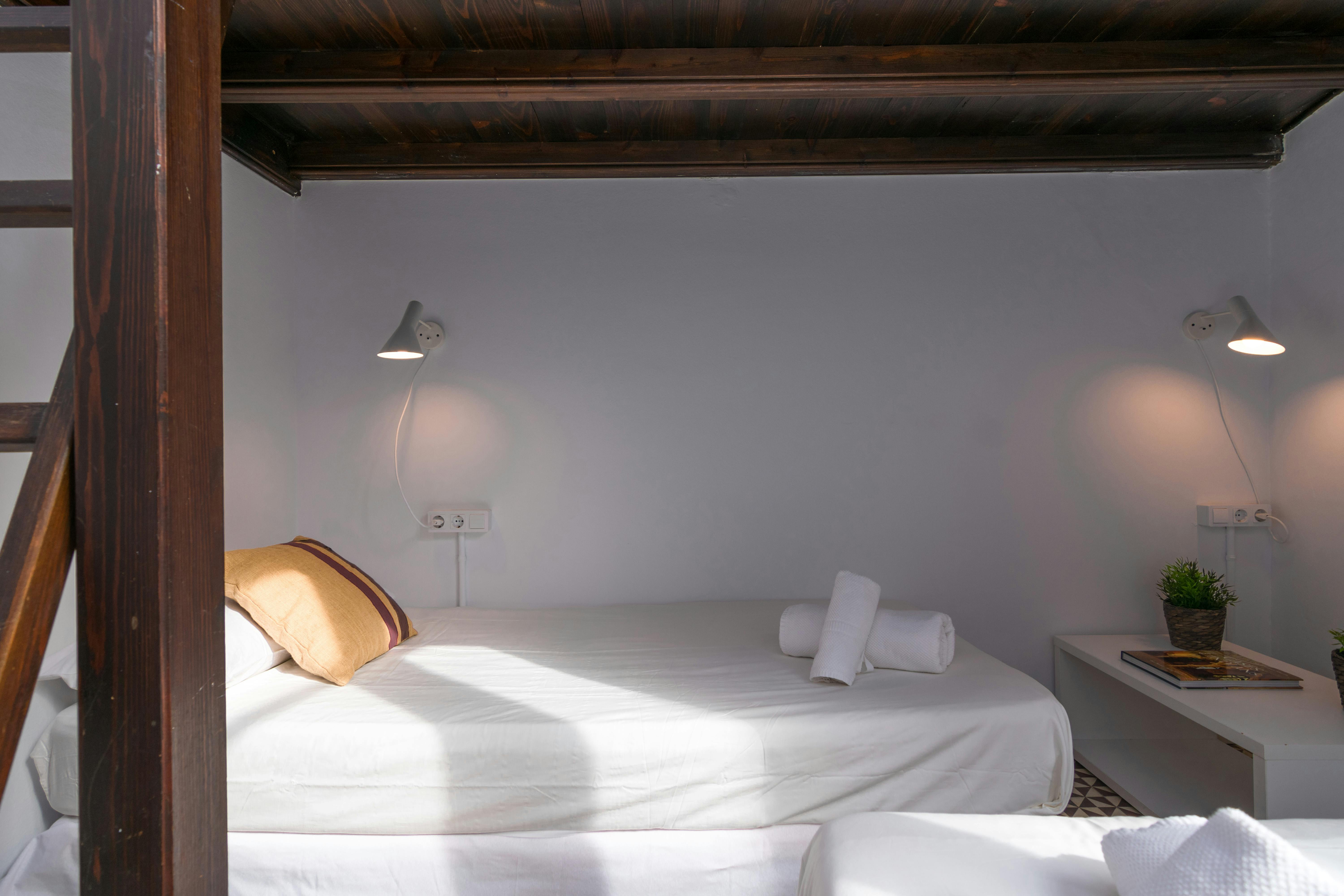 It has 3 bedrooms and 2 bathrooms. A double room, a single room, and a room for 3 people with a single bed and some bunk beds. The apartment also has a small terrace at the back of the apartment.