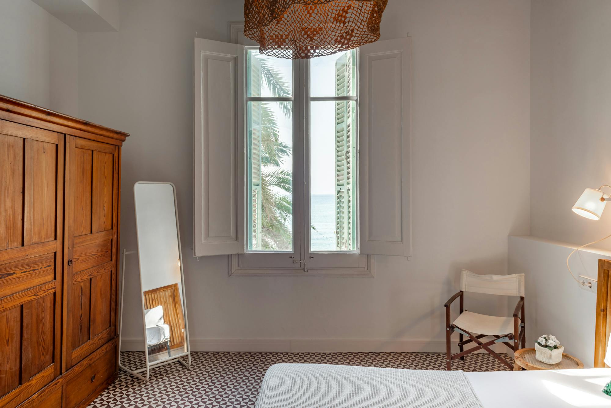 El nostre preciós apartament Superior Vistes al Mar està situat al nostre històric edifici d'apartaments de 1840 a primera línia de platja de Sant Sebastià al centre de Sitges.
